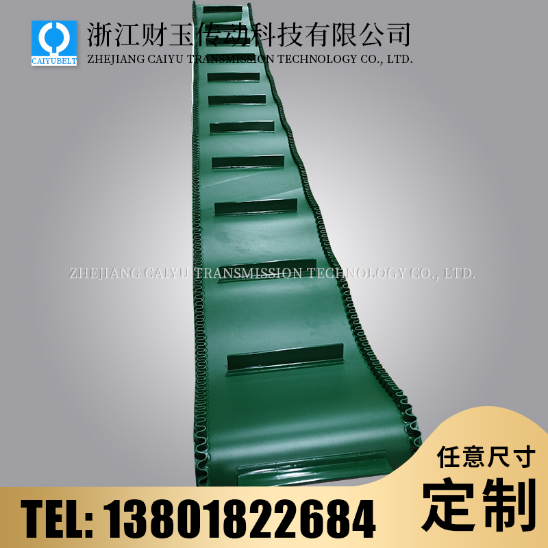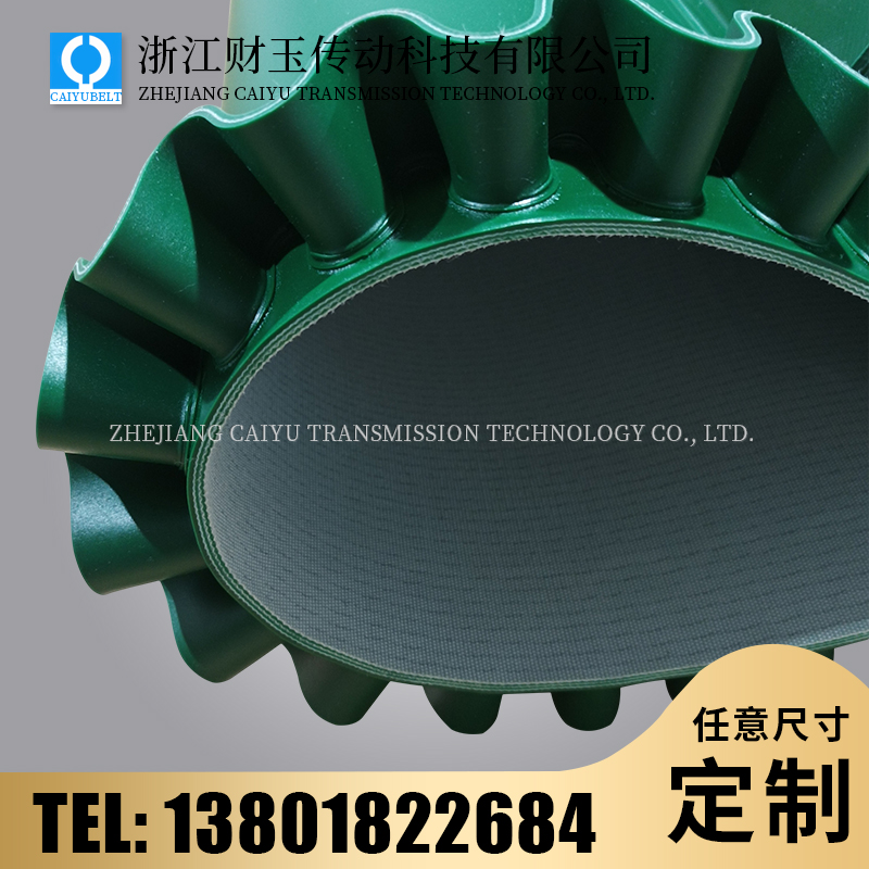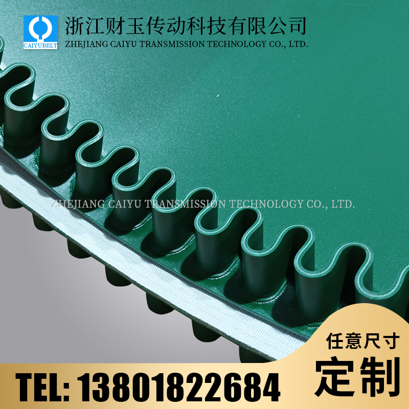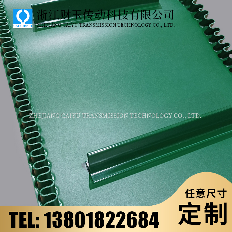 浙江財(cái)玉傳動科技有限公司/CAIYUBELT/綠色PVC裙邊輸送帶
